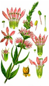 Vom Blutweiderich sind 3 verschiedene Ausformungen der Blüten bekannt, so dass die Pflanze nur mittels Insekten bestäubt werden kann. Die Frucht ist eine zweiklappige Kapsel. Medizinisch verwendet werden die Blütentriebe während der Blütezeit.